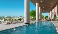 Crea momentos inolvidables en el corazón de tu hogar, dentro de nuestro elegante lounge para residentes, que combina áreas interiores y exteriores en el nivel de la piscina. Este espacio está diseñado para socializar, con un bar moderno y cómodas zonas de descanso, ideales para disfrutar de animadas conversaciones o compartir bebidas con amigos.